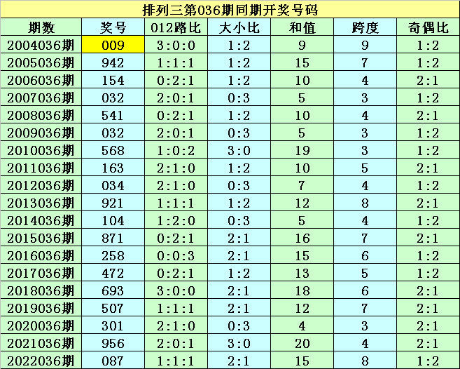 本期为摆设三第2023036期开奖,开奖日历为:2023年2月15日,历史上摆设三第036期已开出了19次奖号,积年同时开出号码永别为:009-942-154-032-541-032-568-163-034-921-104-871-258-472-693-507-301-956-087。